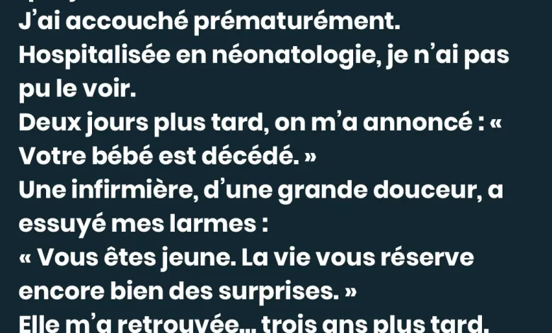 Il n’y a eu aucun geste spectaculaire ni discours moralisateur. Simplement une voix empreinte de douceur authentique, des gestes lents et réconfortants, et cette phrase murmurée avec la délicatesse d’une promesse fragile mais sincère : “Tu es jeune.” La vie a encore des projets pour toi.”